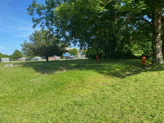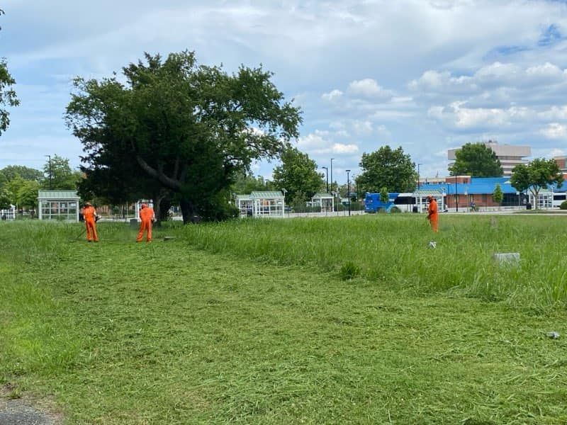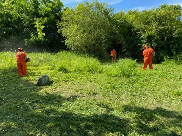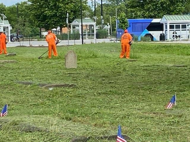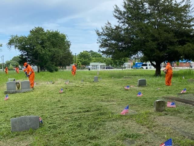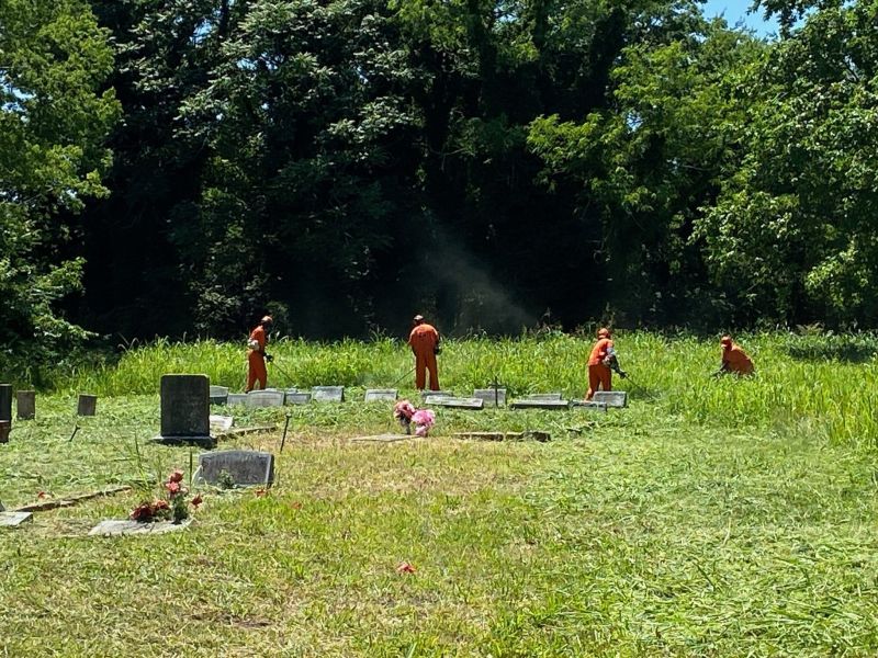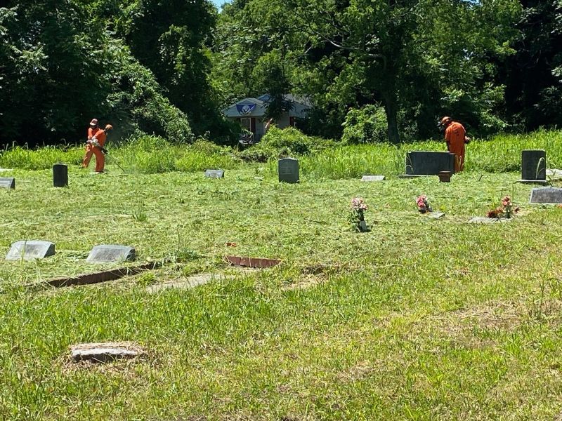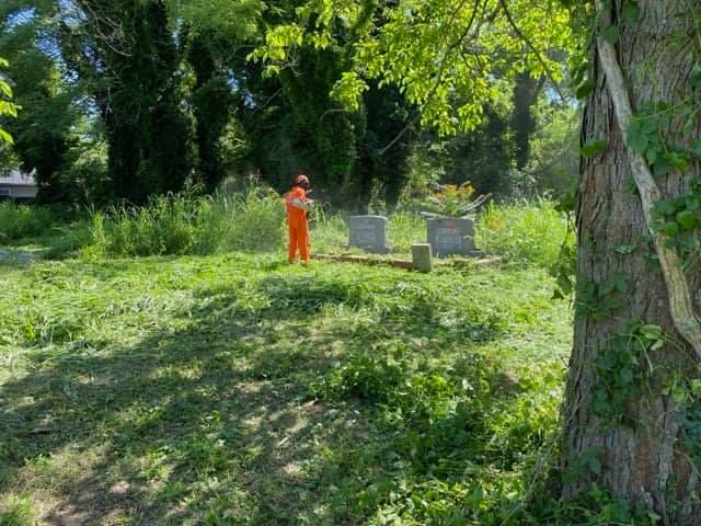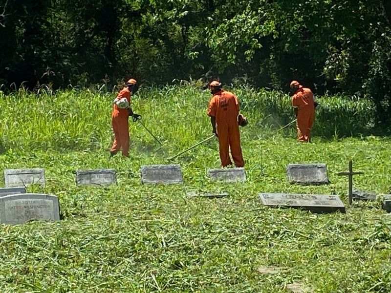 Inmates from the Hampton Sheriff's Office volunteer to help clean up Bassette Cemetery