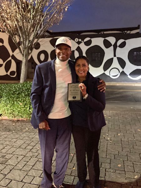 Board members Richard and Nancy Moore receive the Clean City Commission award on behalf of the Foundation.
