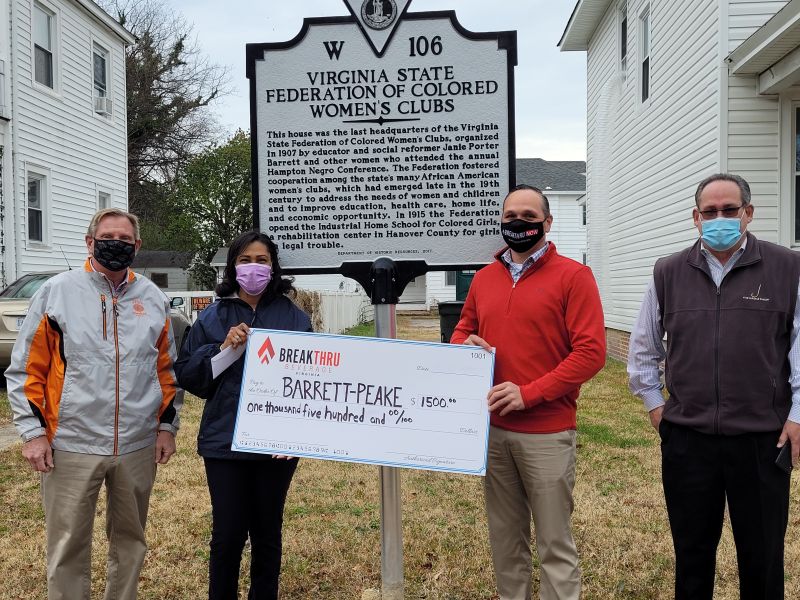The Peninsula Community Foundation of Virginia Presents Grant to the Barrett-Peake Heritage Foundation